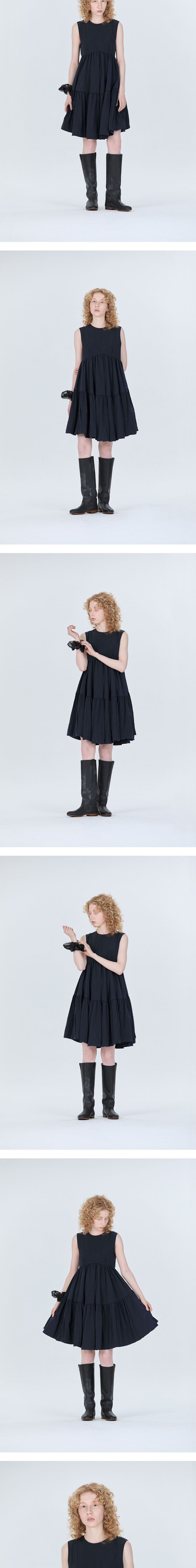 에스티유 우먼즈 포플린 슬리브리스 드레스 네이비