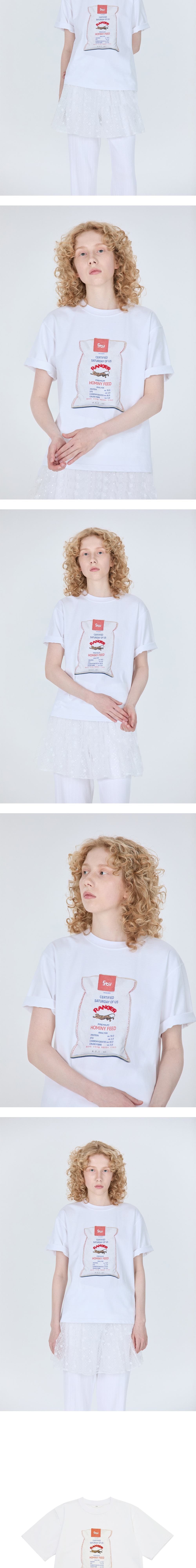 STU Women's Burlap Bag Printing Beads T-shirt White