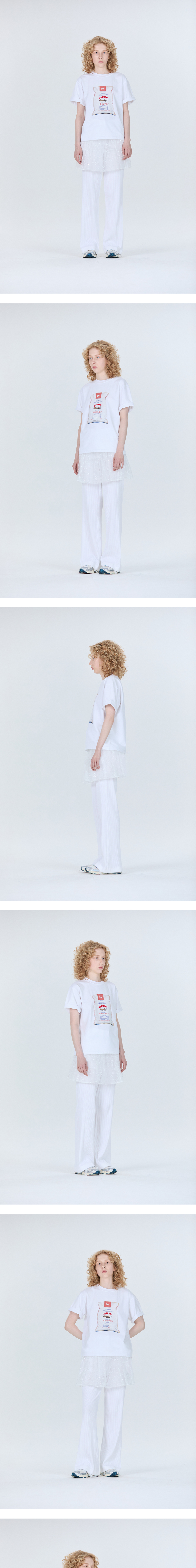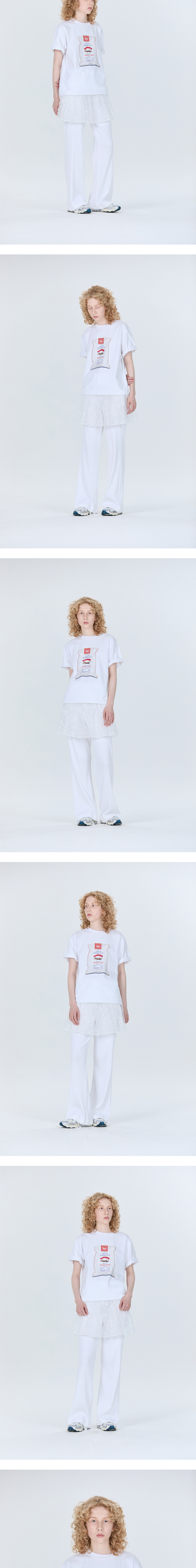 에스티유 우먼즈 벌랍 백 프린팅 비즈 티셔츠 화이트