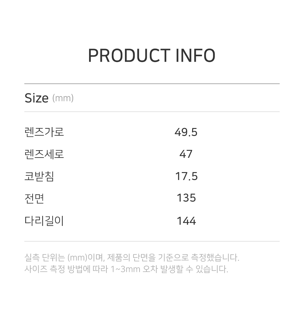 측정 방법에 따라 사이즈에 일부 오차가 있을 수 있습니다.