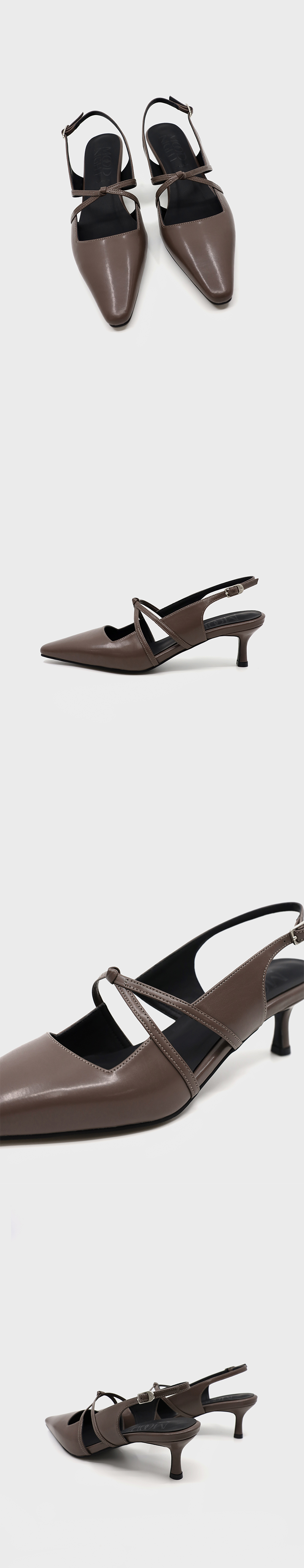 - 감각적인 크로스 바디 스트랩이 돋보이는 슬링백 펌프스 - 안정감있는 5cm의 키튼힐 타입 - 끝 부분을 부드럽게 샌딩한 스틸레토 포인트 토우 - 전체 라텍스 처리된 인솔(in-sole)로 폭신한 착화감