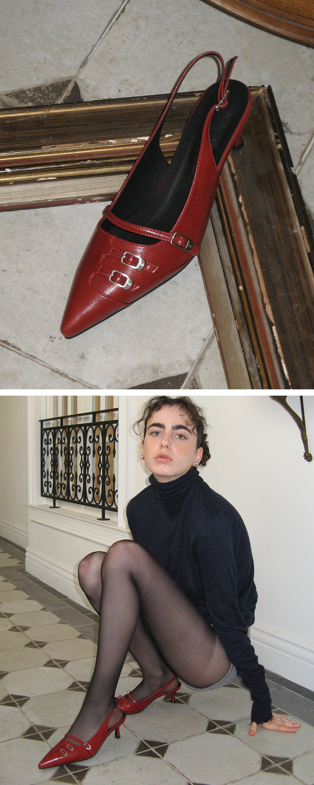 무드나잇 신디 3 벨티드 슬링백 키튼 힐 딥레드