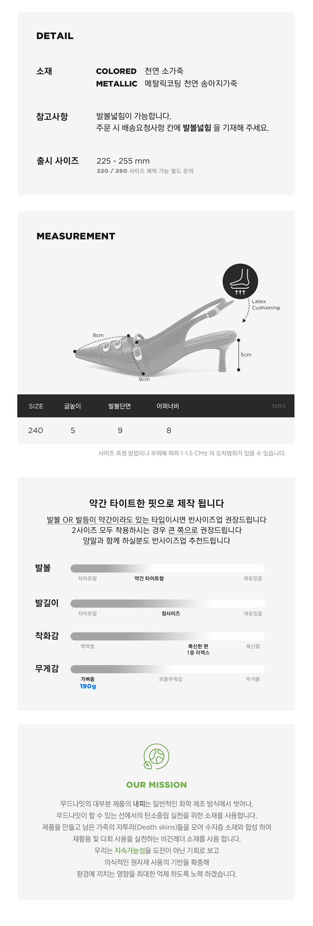 어떤 룩에 매치하는지에 따라 클래식 무드도, 트렌디한 무드도 있는 키튼힐은 발은 편하면서도 약간의 드레스업을 추구할 때 매치하기 좋습니다. 발볼을 커버하며 슬림한 시각효과를 주는 것을 중점으로 설계하여 착화감은 부드러우면서 슬림한 핏을 연출하실 수 있습니다.