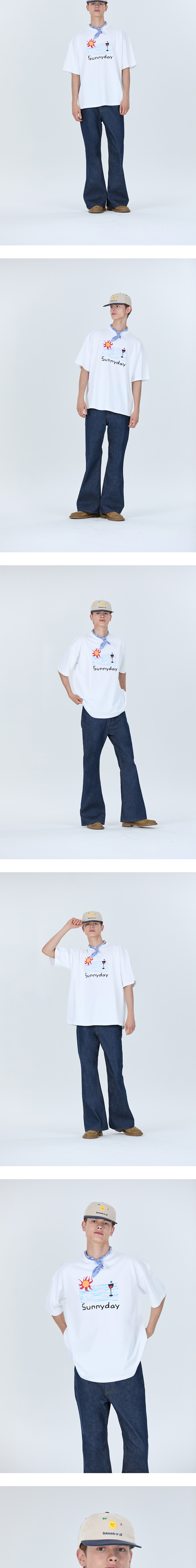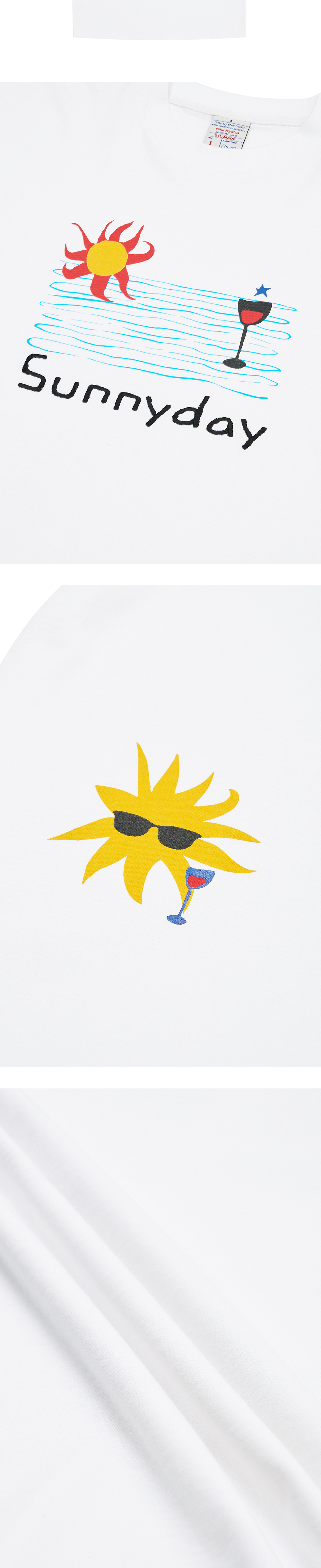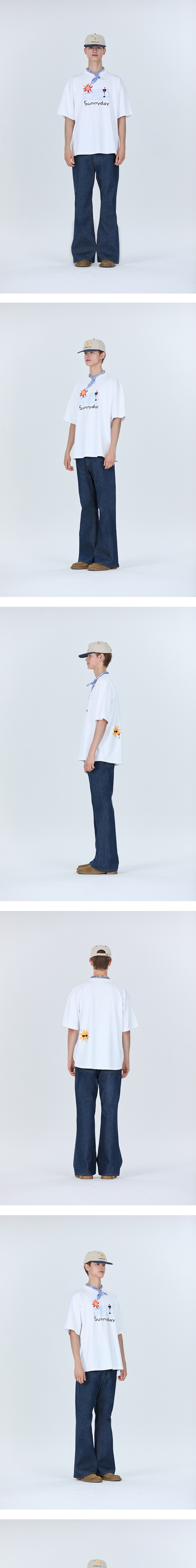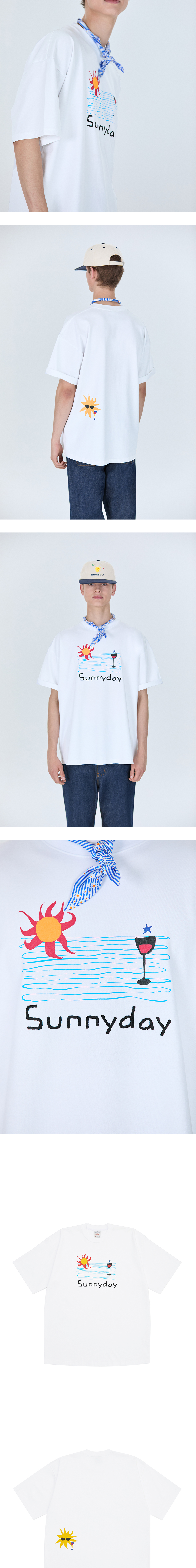 에스티유 썬 프린팅 레터링 엠브로더리 티셔츠 화이트