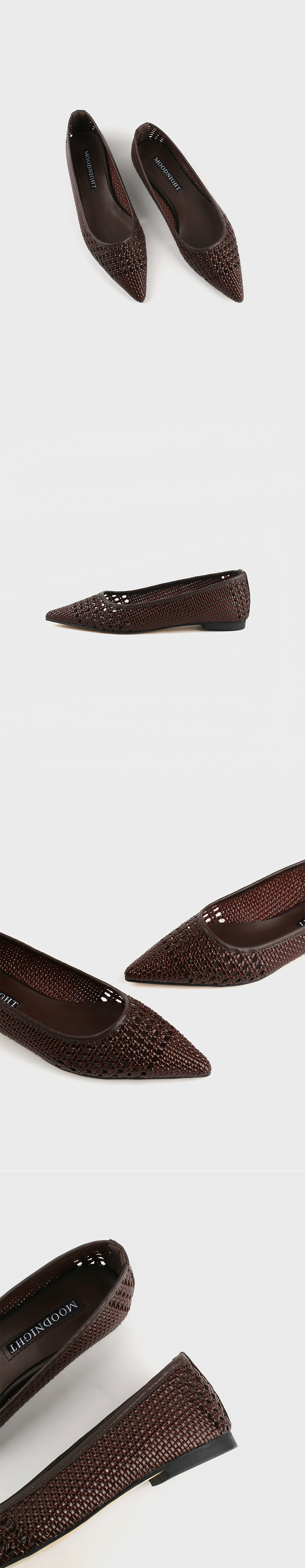 한줄 한줄 핸드 공법으로 제작 되어지는 위빙 소재는 발의 실루엣에 따라 유연하게 핏트 되며 단품 만으로도 드레스업 되는 소재 입니다. 플랫이지만 갖춘 듯한 룩으로 세련되게 신으실 수 있는 제품입니다. 입체감 있는 우아한 곡선미를 자랑하는 쉐입으로 안정감 있게 즐기실 수 있습니다.