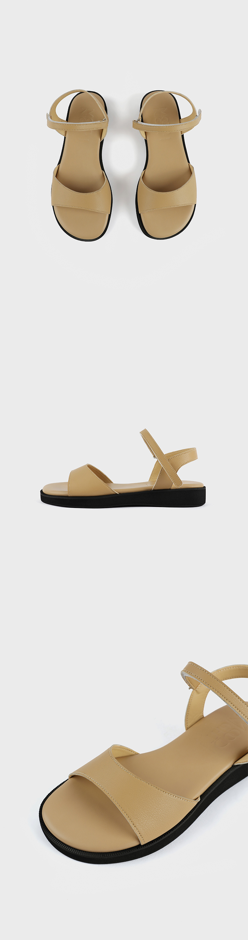 약간은 귀여운 느낌이 들기도 하는 동그마한 라스트가 발을 편안하게 커버해 줍니다. 슬림한 벨크로 스트랩으로 손쉽게 신고 벗으실 수 있습니다. 과한 디테일 없이 가죽샌들 특유의 자연스러움을 느끼실 수 있으며, 다양한 삭스와의 매치도 조화로운 아이템으로 높은 활용도를 자랑합니다.
