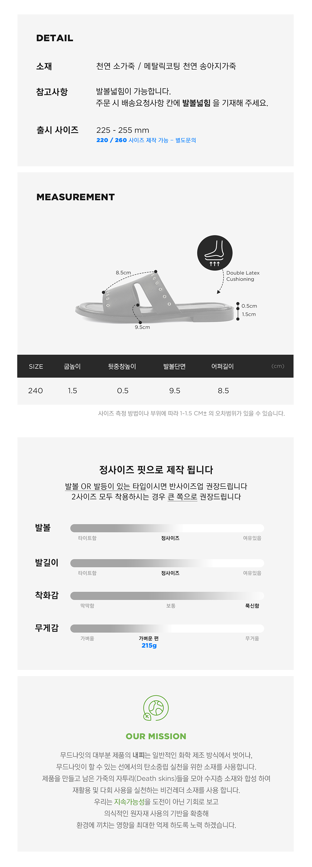 발볼넓힘 또는 특수사이즈 변경을 희망하시는 분들은 주문서의 배송요청사항 칸에 입력 부탁드립니다. 사양변경 주문건은 수령 후 교환/반품이 불가 합니다.