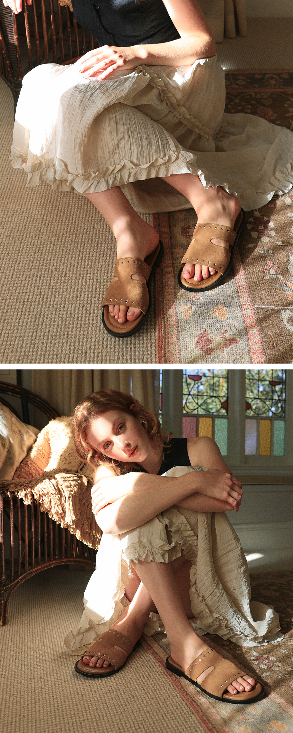 - 라인을 따라 포인트 매치한 아일렛 디테일 - 부드럽고 유연한 어퍼(Upper)로 발등에 부드럽게 밀착 - 미니멀하지만 확실한 디테일로 단품만으로 드레스업 - 2중 라텍스 쿠셔닝 인솔(in-sole)로 장시간 착화에도 피로하지 않은 착화감