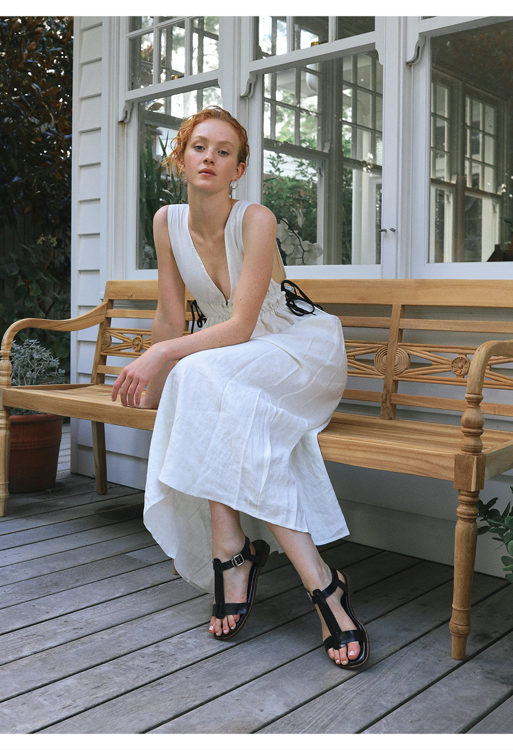 - 미니멀한 T스트랩으로 간결한 실루엣의 플랫샌들 - 발등을 따라 부드럽게 고정해주는 스트랩으로 안정감있는 착화감 - 복숭아뼈 아래로 떨어지는 기장으로 신었을 때 슬림한 시각효과 - 유연하고 부드러운 라텍스 쿠셔닝으로 푹신푹신한 인솔(in-sole)