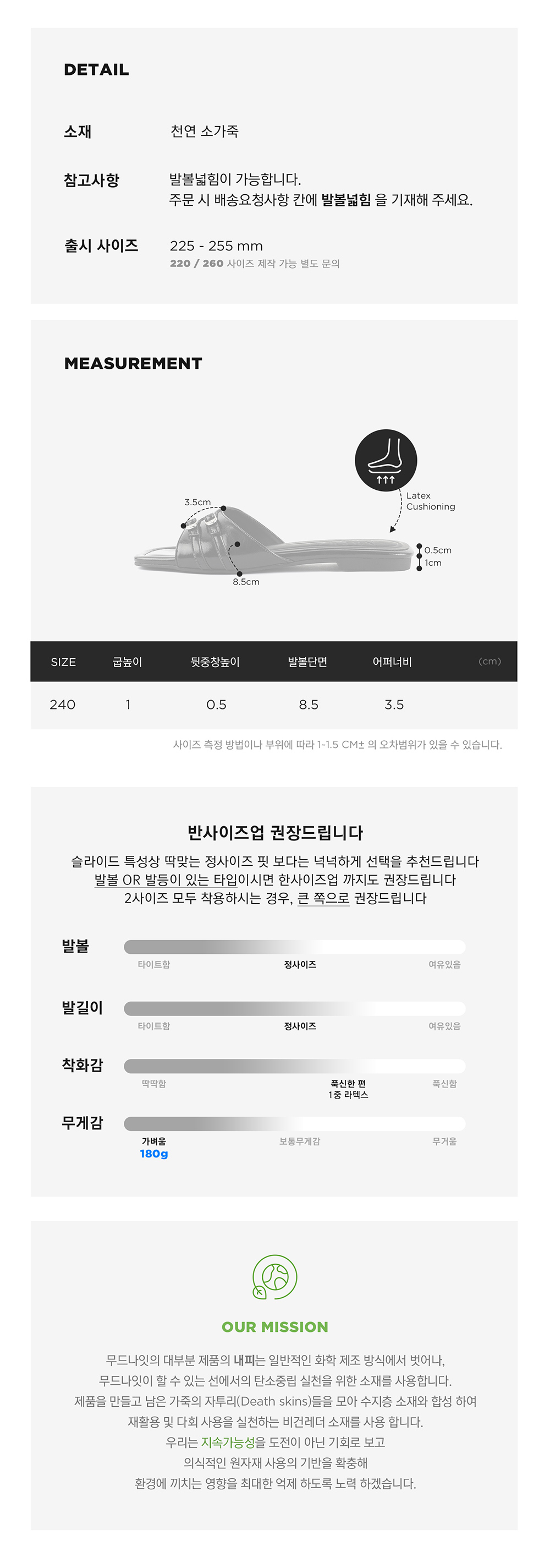 발볼넓힘 또는 특수사이즈 변경을 희망하시는 분들은 주문서의 배송요청사항 칸에 입력 부탁드립니다. 사양변경 주문건은 수령 후 교환/반품이 불가 합니다.