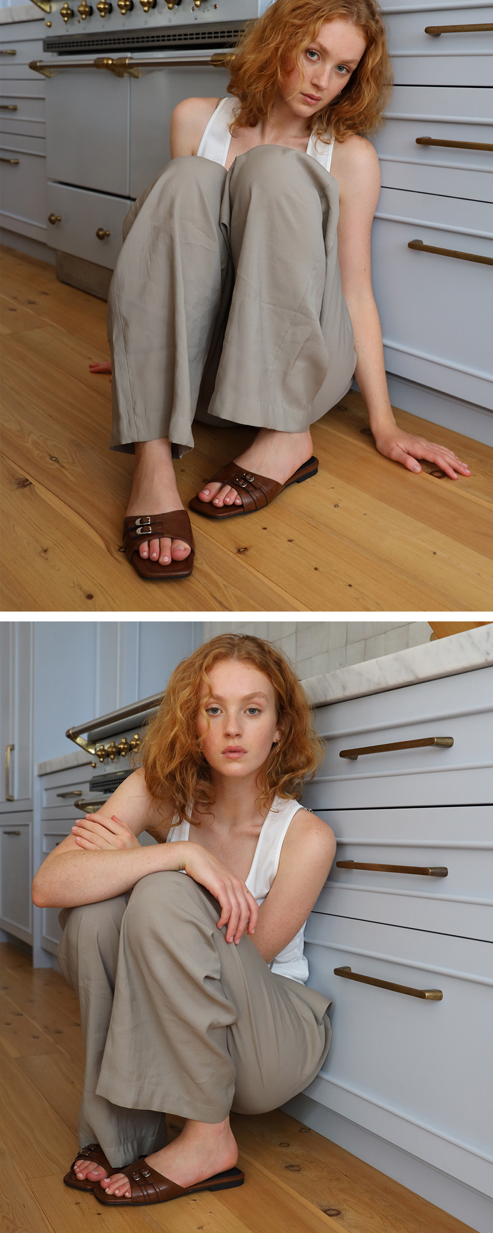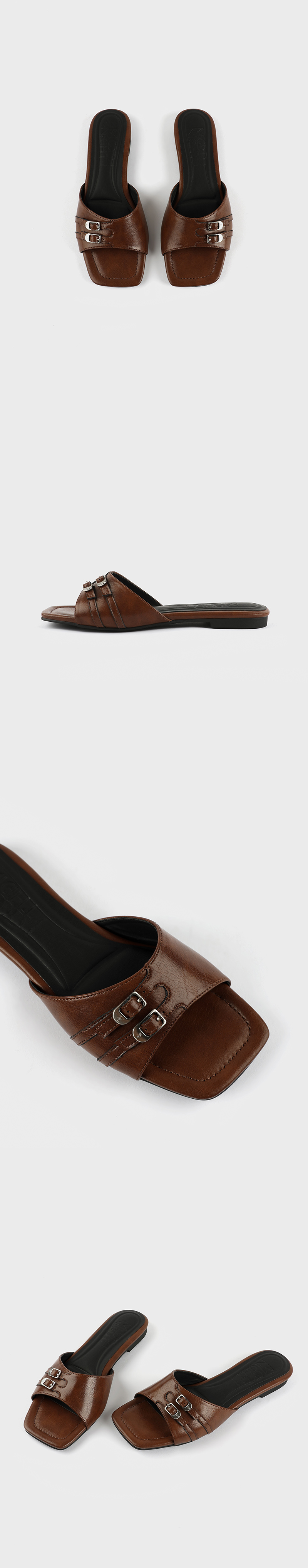 - 2개의 로고 벨티드 스트랩이 레이어드 되어 구조적인 라인 - 편안한 슬라이드 타입으로 충분히 드레스업 할 수 있는 무드 - 감각적인 스퀘어 타입 - 전체 라텍스 처리된 인솔(in-sole)로 편안한 착화감