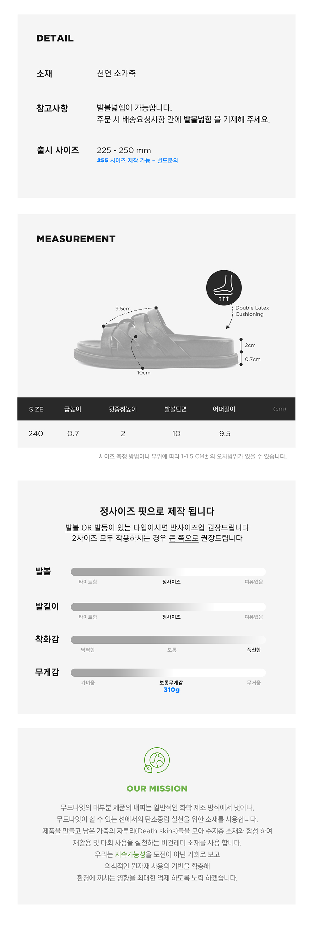 발볼넓힘 또는 특수사이즈 변경을 희망하시는 분들은 주문서의 배송요청사항 칸에 입력 부탁드립니다. 사양변경 주문건은 수령 후 교환/반품이 불가 합니다.