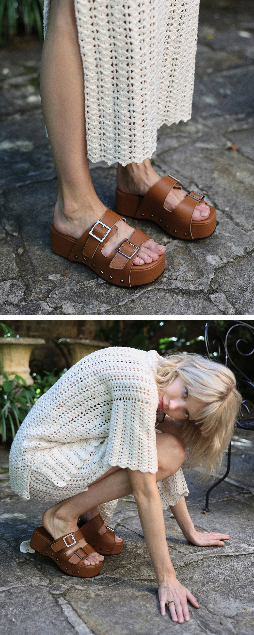 볼륨감 있는 실루엣으로 룩에 무게감을 실어주는 클로그 (Clog) S/S 시즌에 걸맞는 샌들 타입으로 출시 되었습니다. 청키한 플랫폼과 어우러지는 니켈 색상의 스터드와 벨트 디테일은 너무 부담스럽지 않을 정도의 포인트를 주는 역할을 합니다. 안정감있는 어퍼(upper) 가죽이 발을 부드럽게 잡아줍니다.