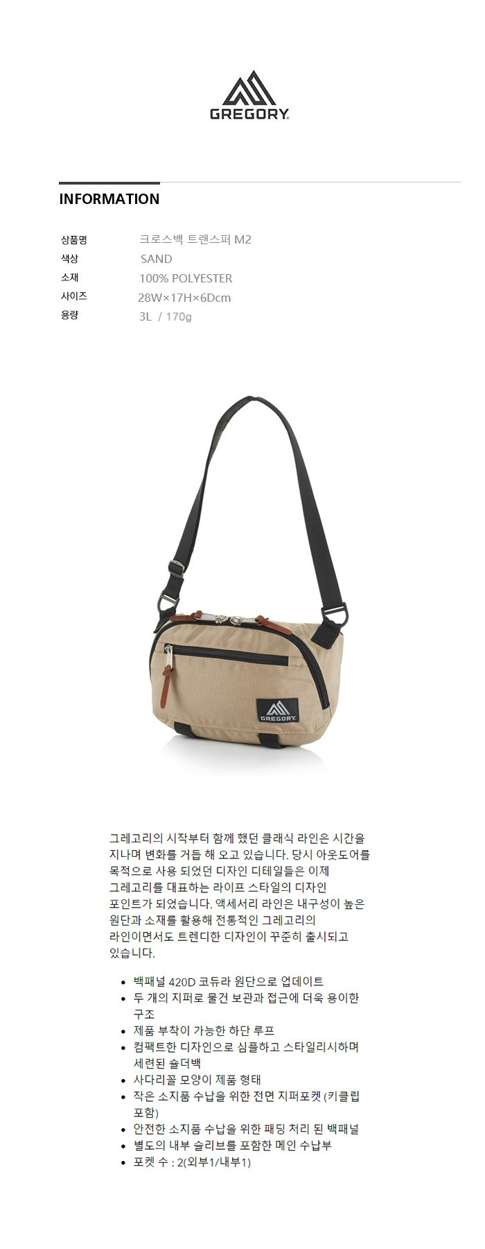 그레고리 트랜스퍼M2 크로스백 샌드