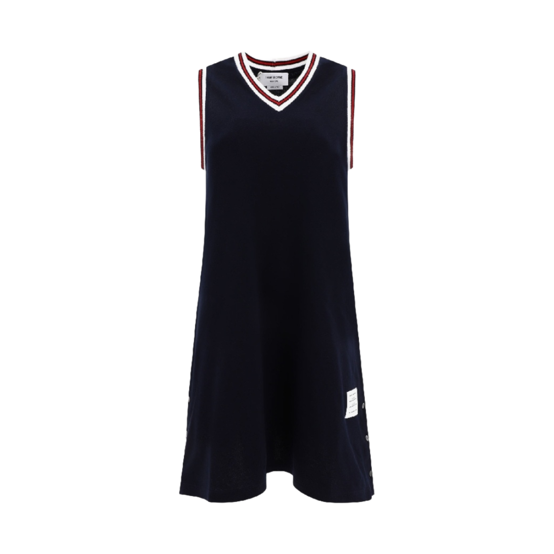 (W) 톰브라운 클래식 피케 스트라이프 브이넥 테니스 드레스 네이비