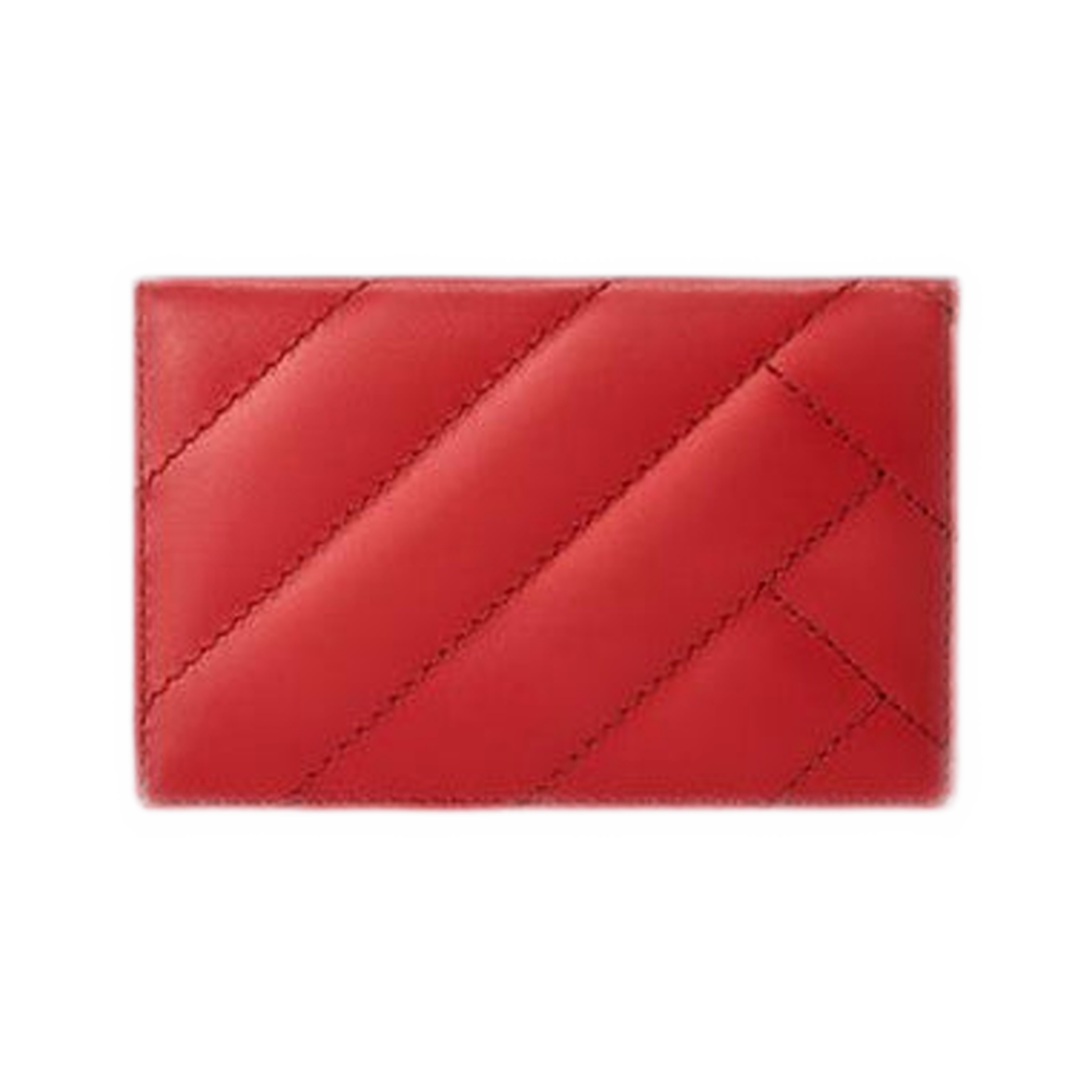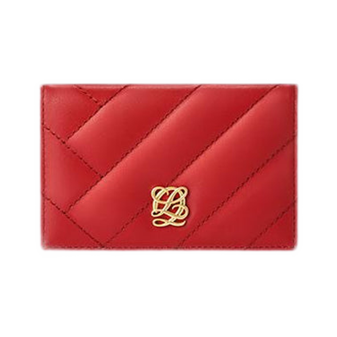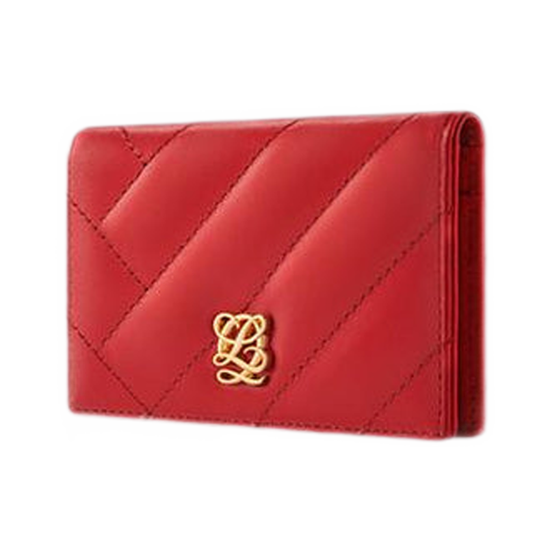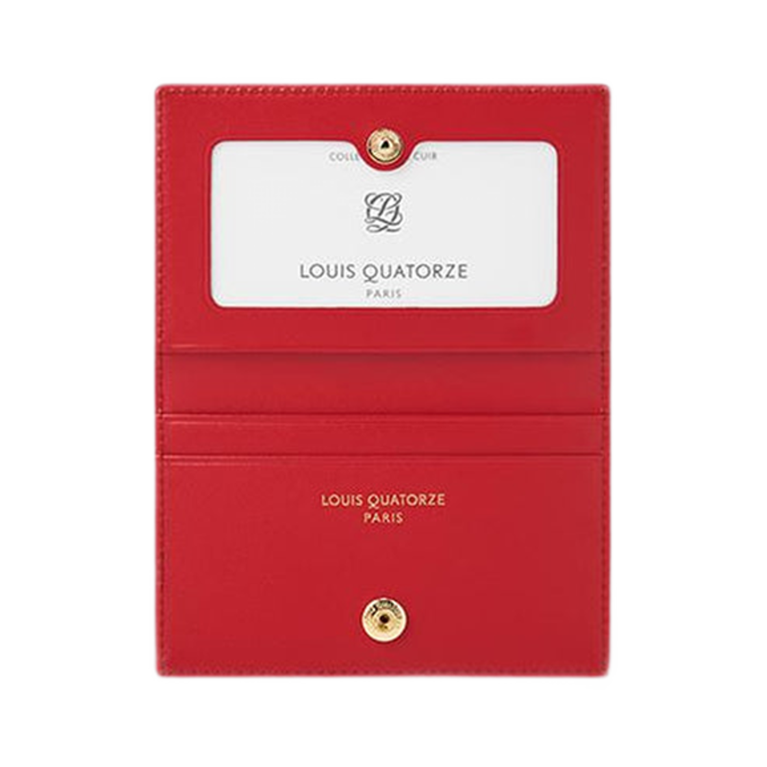 Louis Quatorze L-Quilting Leather Bi-Fold Card Slim Wallet Red