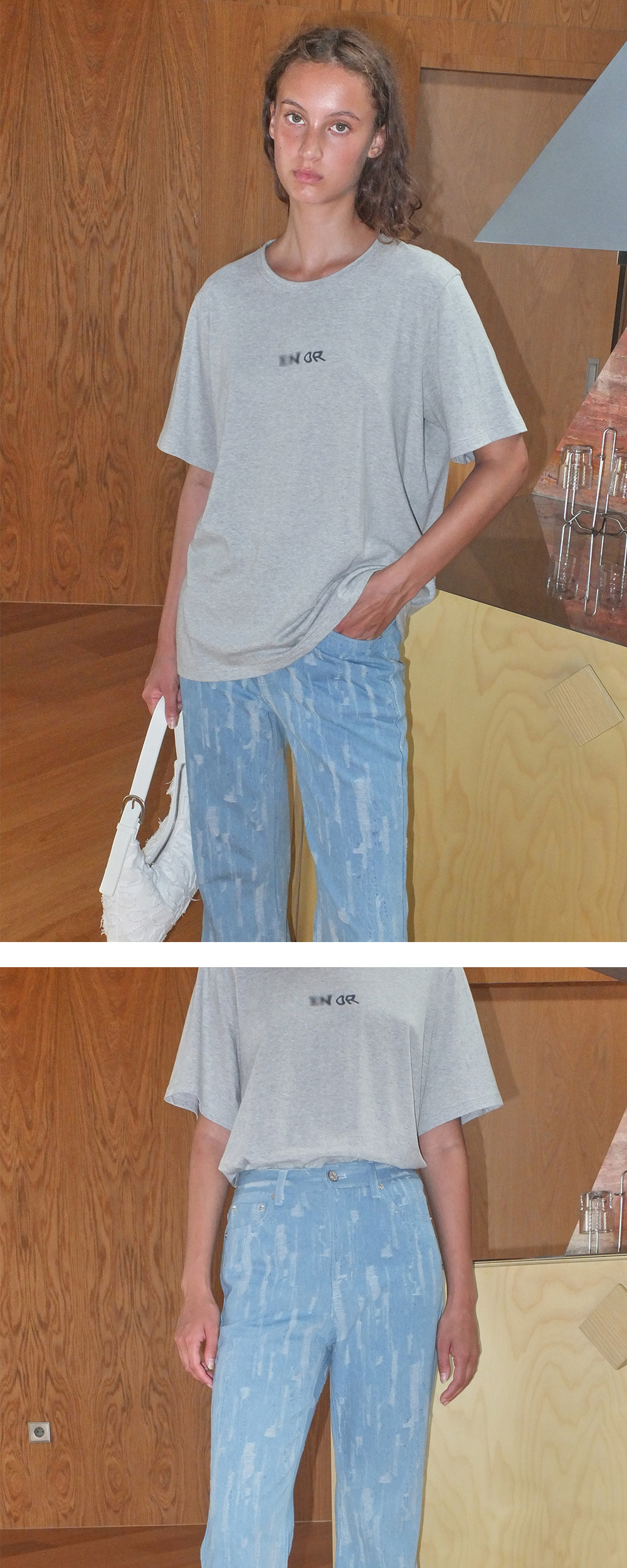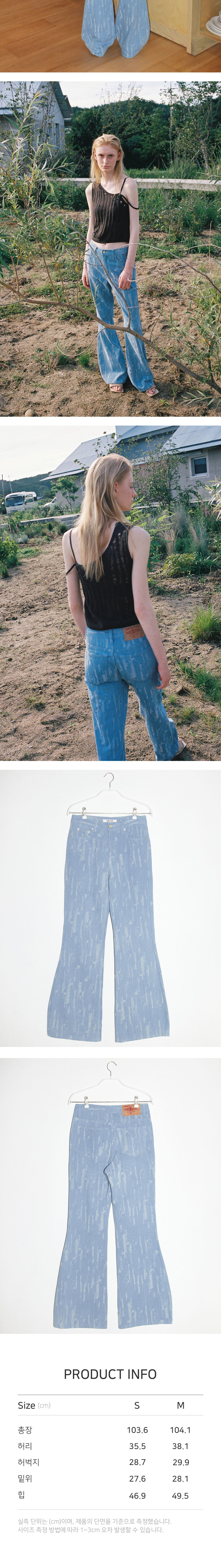 - 불규칙한 디스트로이드 소재 디테일이 돋보이는 세미 부츠컷 데님입니다. - 힙과 허벅지 부분은 알맞게 핏을 잡아주고 무릎부터 자연스럽게 떨어지는 부츠컷 실루엣으로 더욱 슬림하고 길어 보이게 연출이 가능합니다. - 전체 디스트로이드 포인트로 베이직한 아이템과 스타일링하기 용이합니다. - 저밀도 7수 원단의 무겁지 않은 청량한 소재감이 돋보이는 데님으로 봄, 여름 착용하기 좋은 두께감의 아이템입니다.
