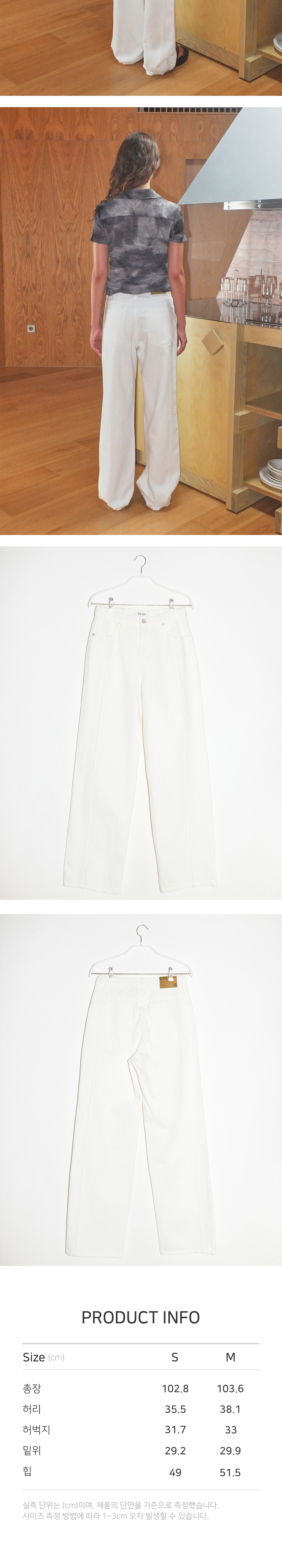 *Fabric by CONE MILLS - 미국 콘밀사의 원단으로 밀도가 높고 탄탄하며, 과하지 않은 와이드 스트레이트 핏으로 전체적으로 여유 있고 편안한 실루엣의 데님입니다. - 앞, 뒷판 절개라인을 봉제 후 워싱 처리를 하여 자연스럽 풀리는 울 디테일이 포인트가 되는 아이템입니다.
