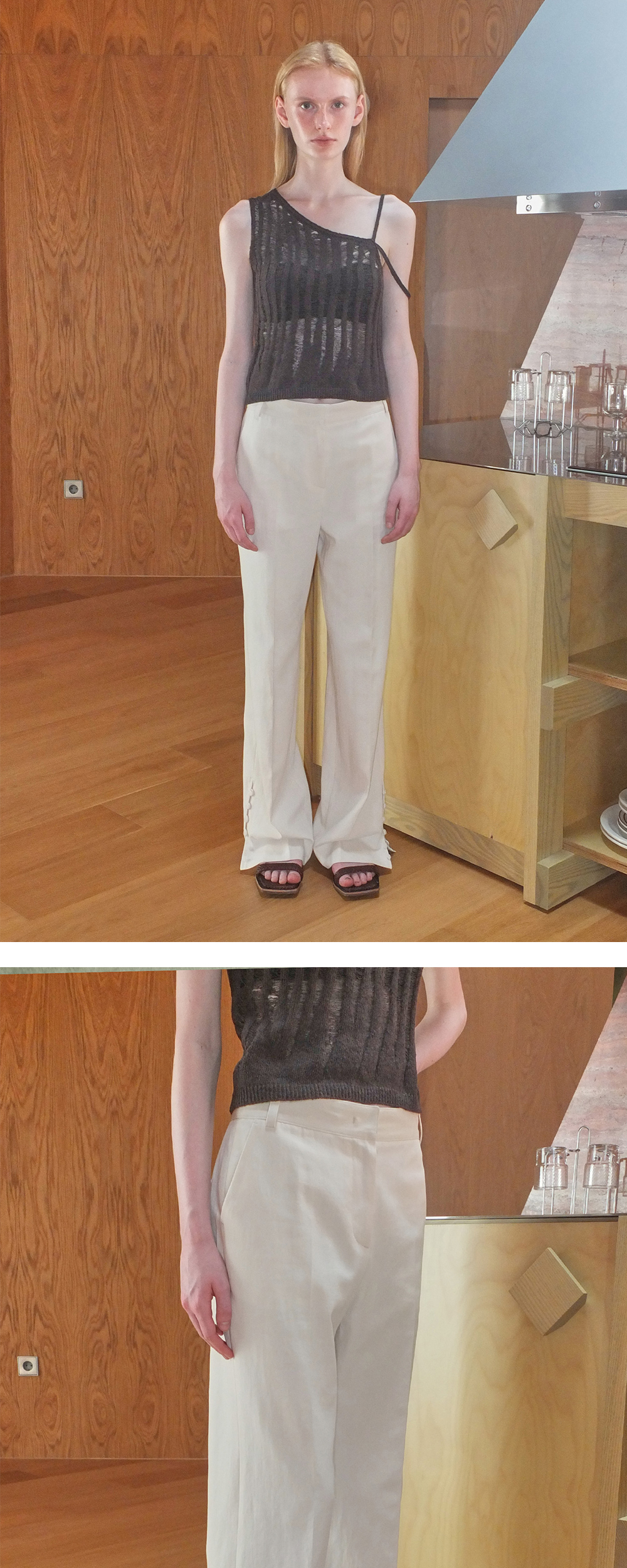 - 포멀한 분위기를 선사하는 슬릿 팬츠입니다. - 전체적으로 미니멀하고 베이직한 디자인에 밑단 사이드 슬릿의 단추와 고리 디테일을 더해 포인트를 주었습니다. - 바이오 워싱이 되어있는 원단의 소프트한 터치감으로 편안한 착용감을 선사합니다.