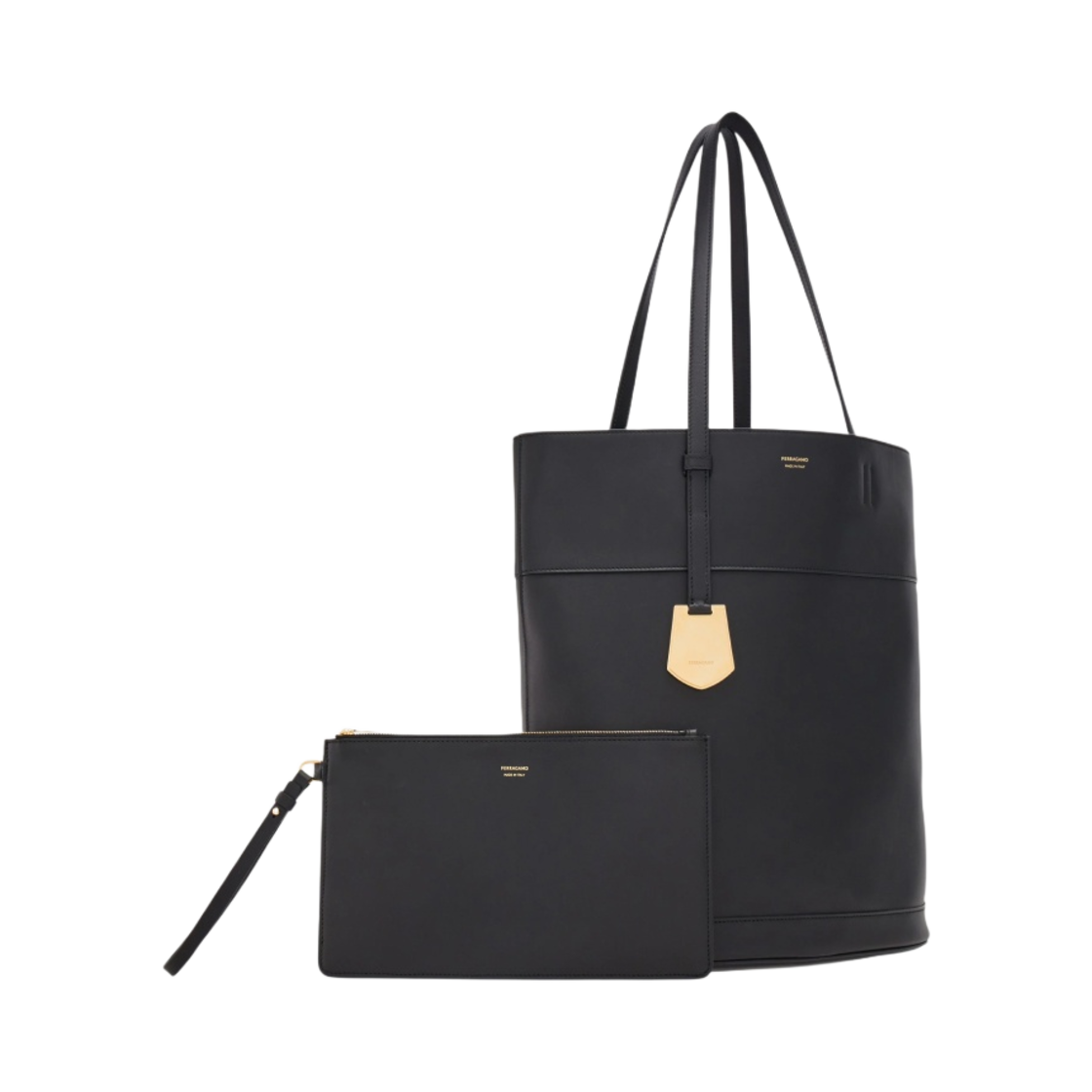 페라가모 미디움 노스 사우스 차밍 토트백 블랙