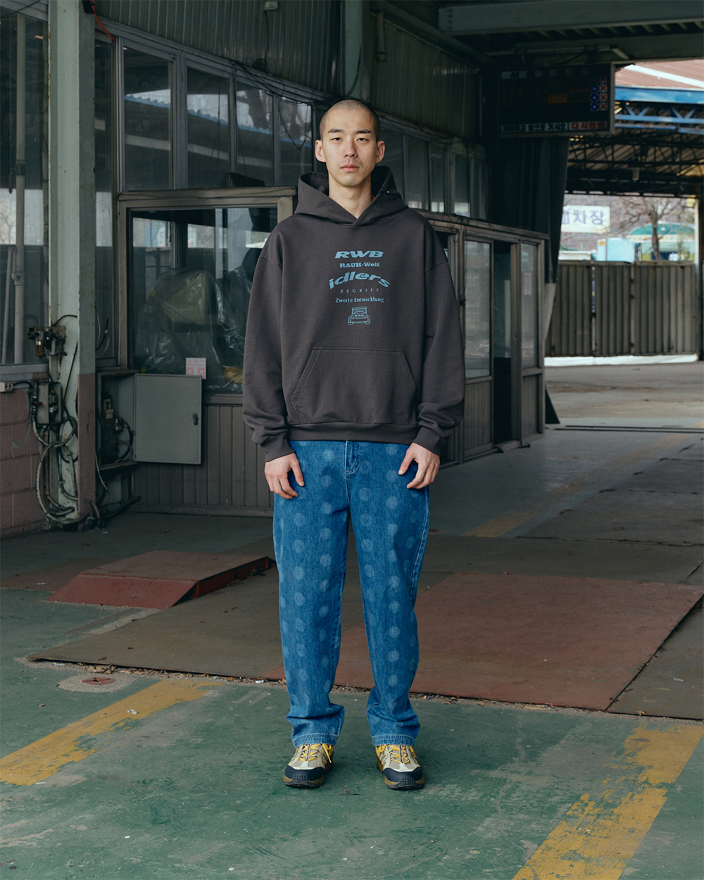 알더블유비 스테이플 로고 후드티 차콜