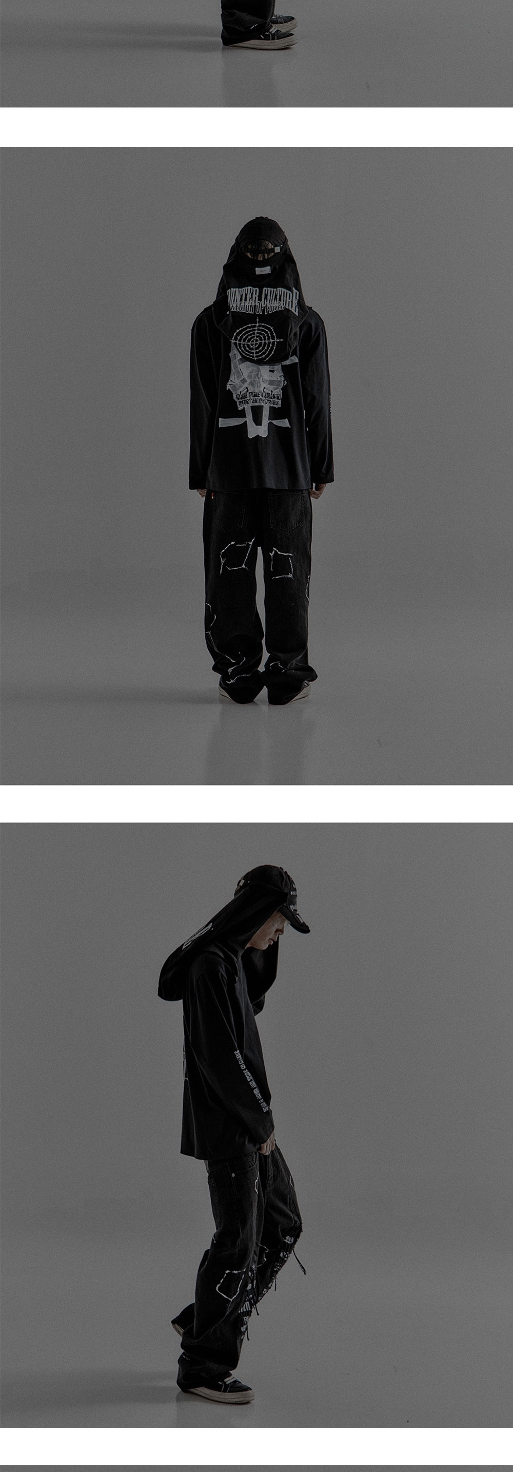Resurrection13 Boro & Printing Detail Denim Pants Black