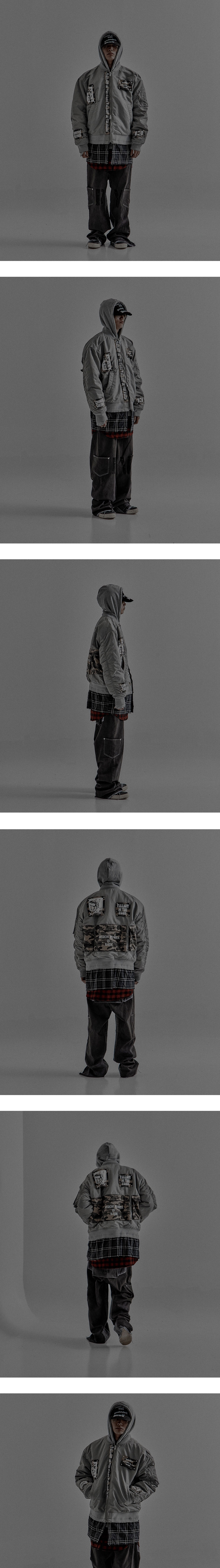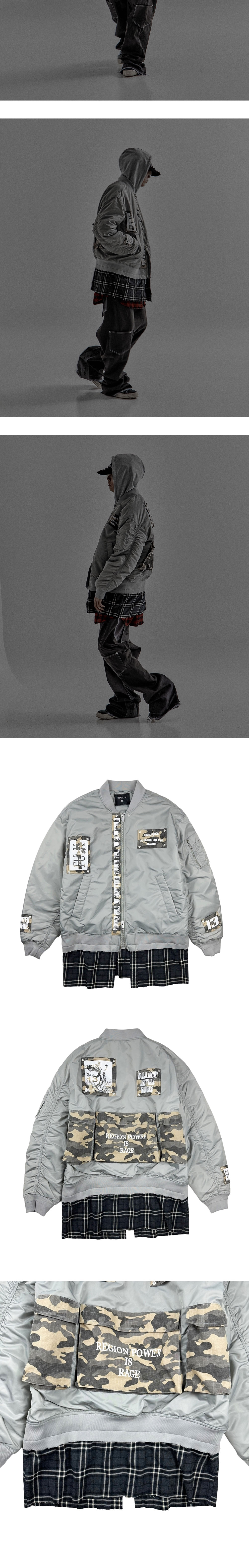 레저렉션13 리사이클 셔츠 믹스드 밀리터리 Ma-1 그레이