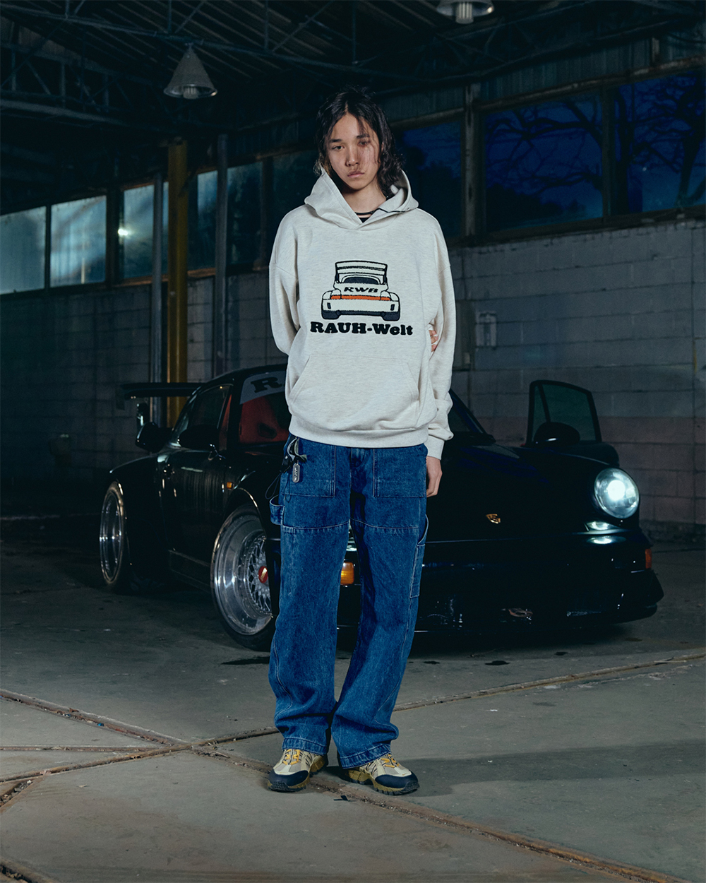 RWB Embroidery Car Hoodie Melange Grey