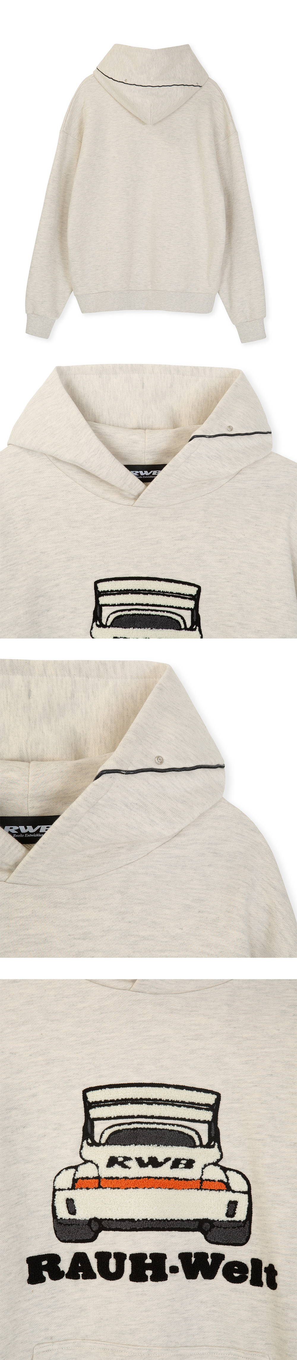 알더블유비 엠브로이드 카 후드티 멜란지 그레이