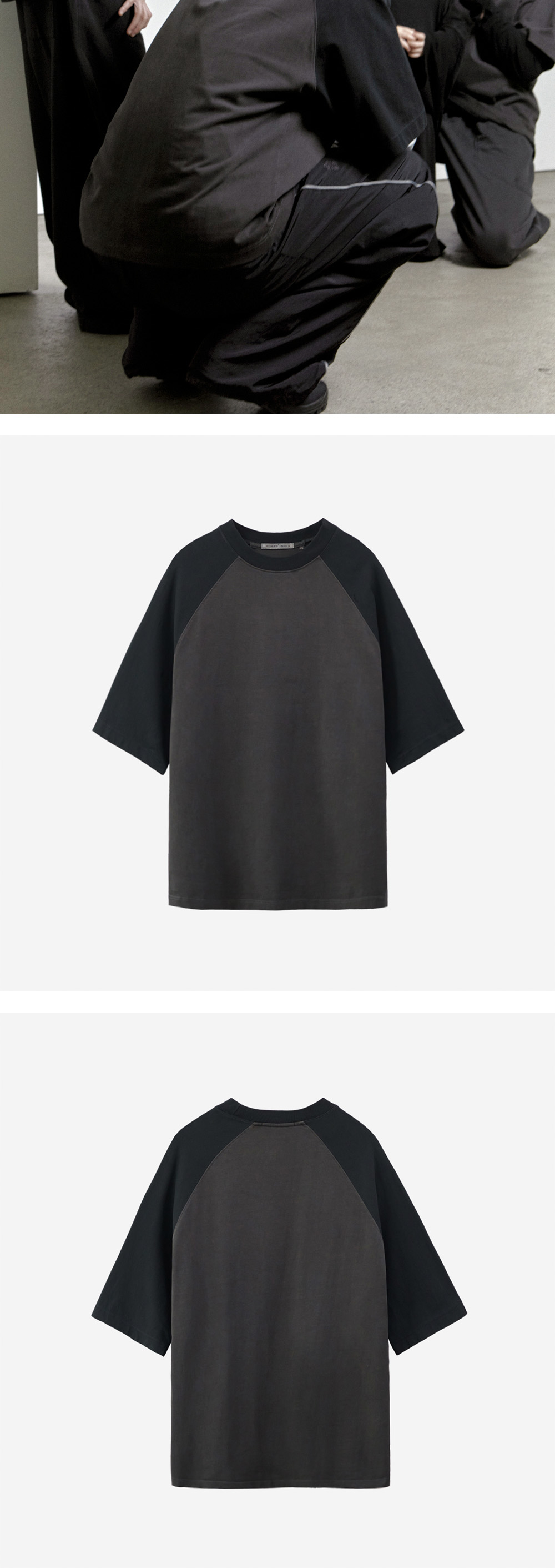 human raglan 1/2 mock tee * 탄탄한 조직감의 1/2 코튼 티셔츠 * 가먼트 다잉 및 워시 가공으로 부드러운 표면촉감 * 래글런 티셔츠 베이스로, 라운드 넥과 모크넥 사이의 오리지널 패턴으로 해석한 세련 된 실루엣 2 - 4 size 각 사이즈 100 / 103 / 105 사이즈감. 신장 기준, 2 - 4 사이즈 각 170초반 / 170중반 / 180초반 착용시 적당히 넉넉한 실루엣으로 착용할 수 있습니다. * 기호에 따라 업사이징 가능