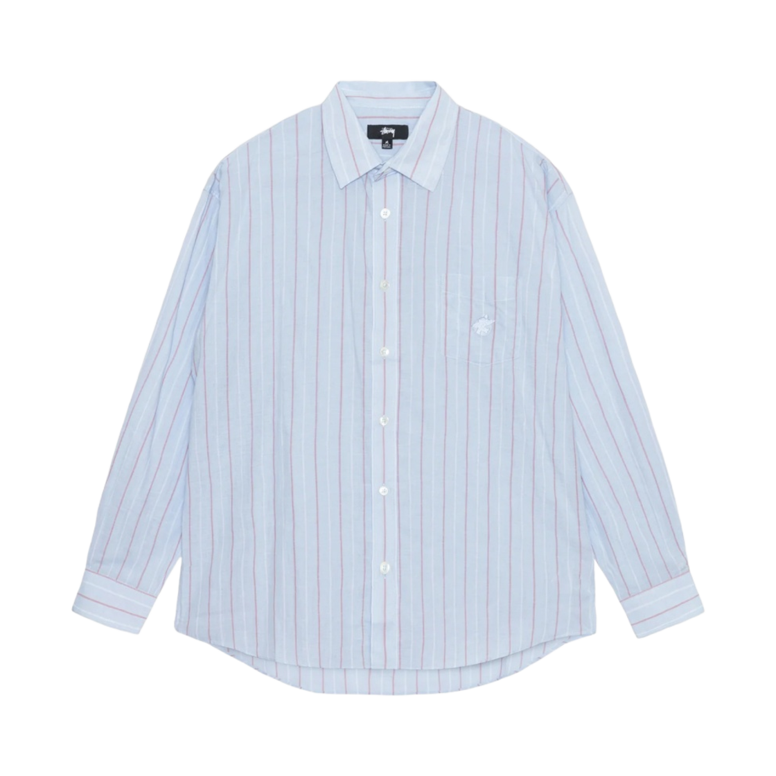 스투시 스트라이프 코튼 리넨 클래식 셔츠 라이트 블루