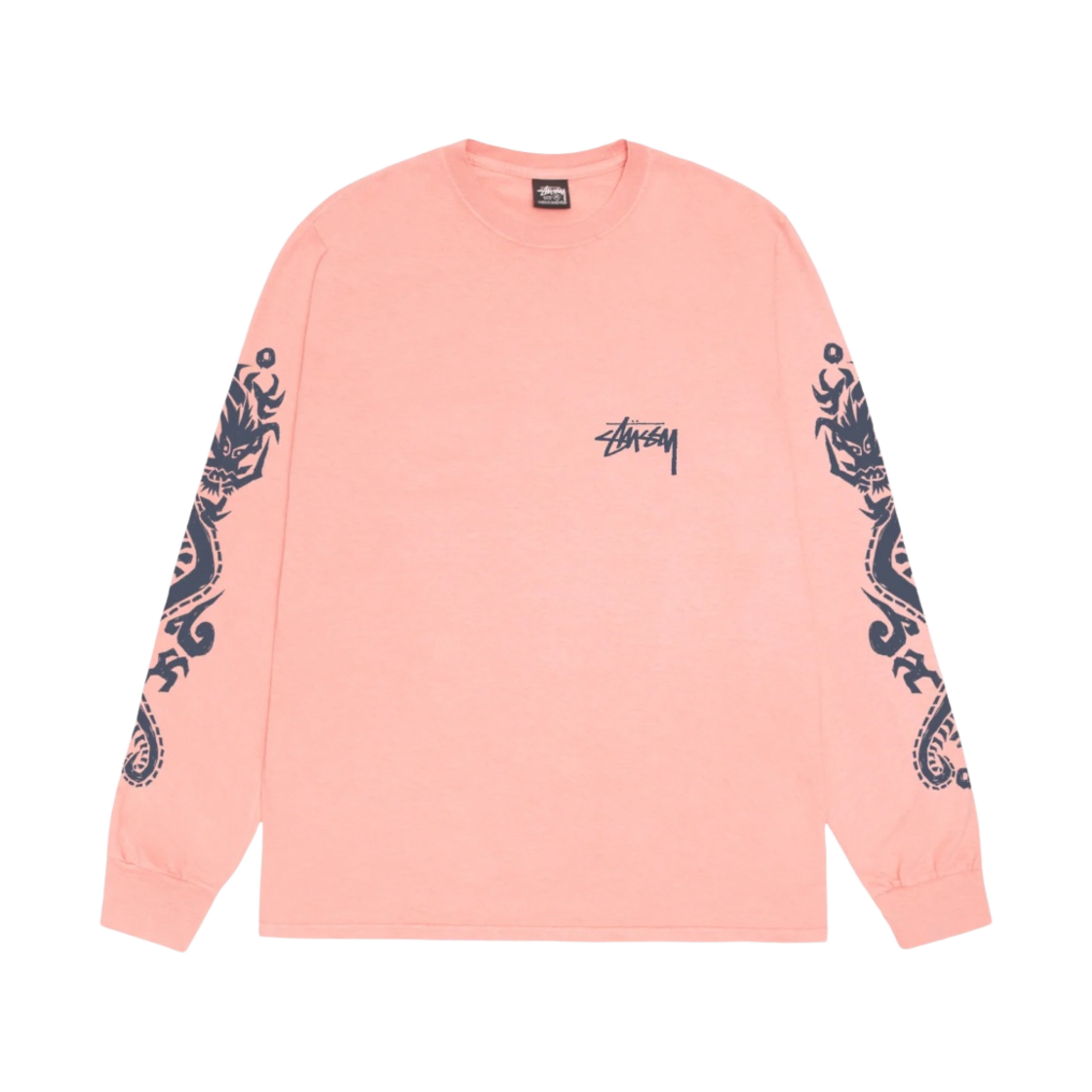 Stussy Dragons Pigment Dyed LS T-Shirt Coral
