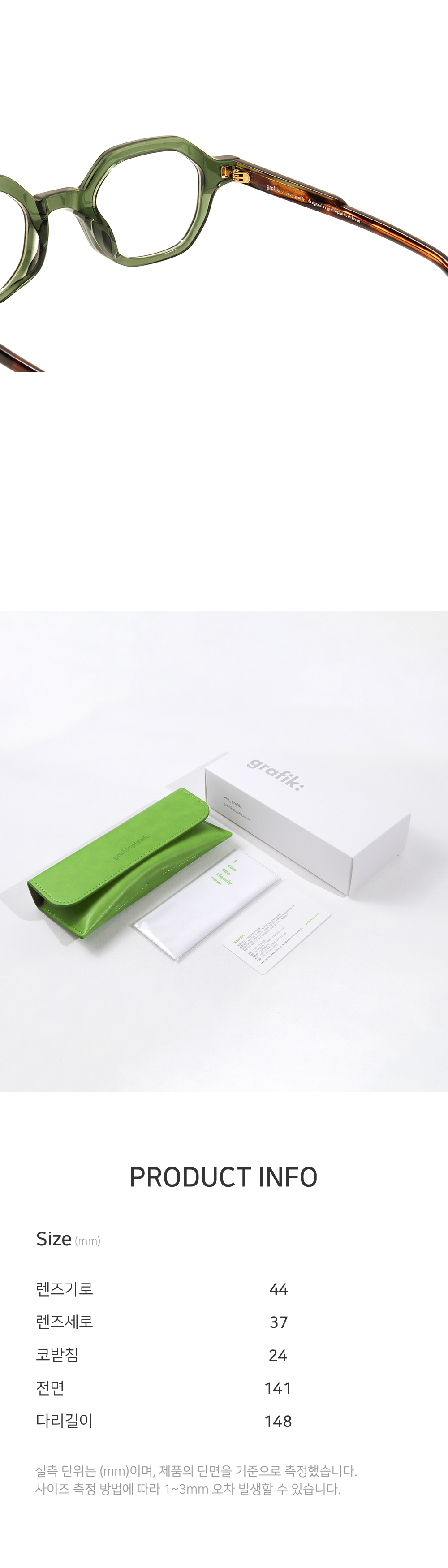 *안경테에 장착되어있는 렌즈는 프레임의 형태의 변형을 막기 위한 플라스틱 데모렌즈입니다.