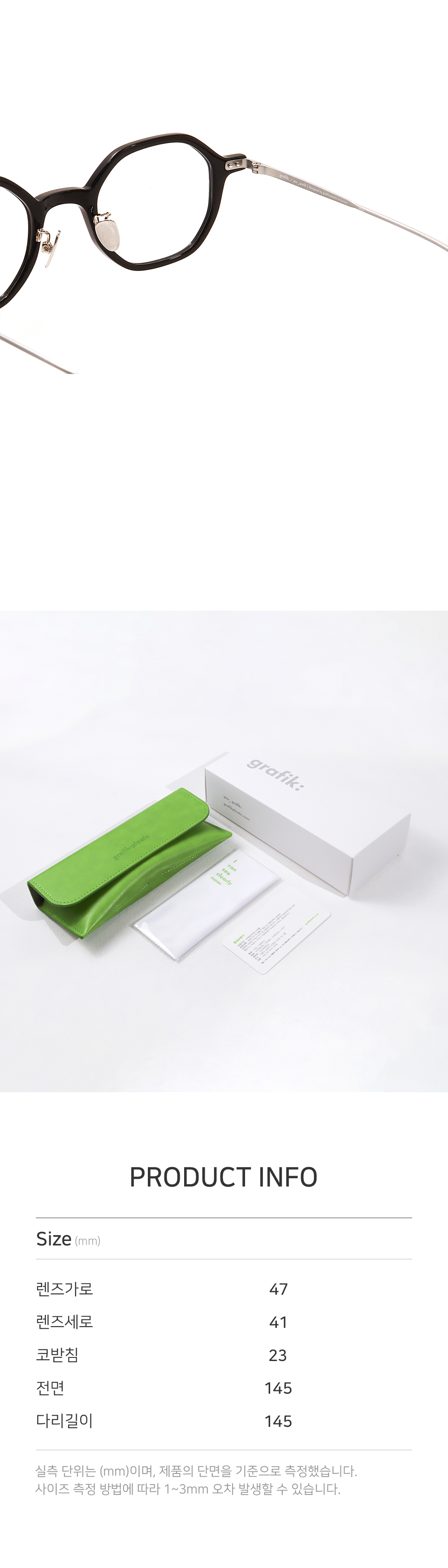 *안경테에 장착되어있는 렌즈는 프레임의 형태의 변형을 막기 위한 플라스틱 데모렌즈입니다.