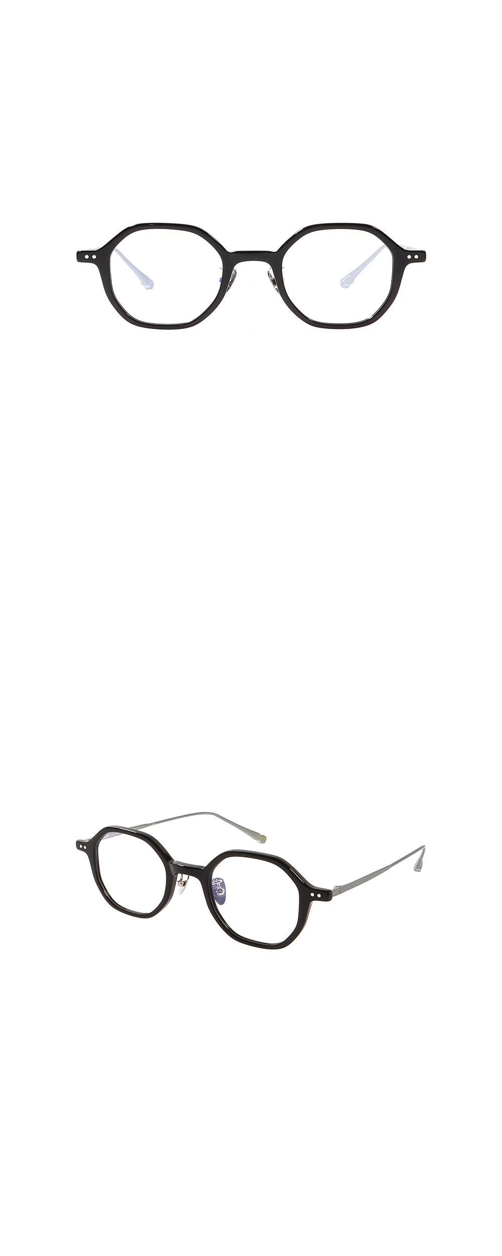 펜슬02번의 아세테이트 버전으로 색다른 여러가지의 조합을 만나보실 수 있는 크래프트05 제품입니다. 다각형의 프레임, 아세테이트 전면부와 티탄소재 템플이 조화로운 안경입니다.