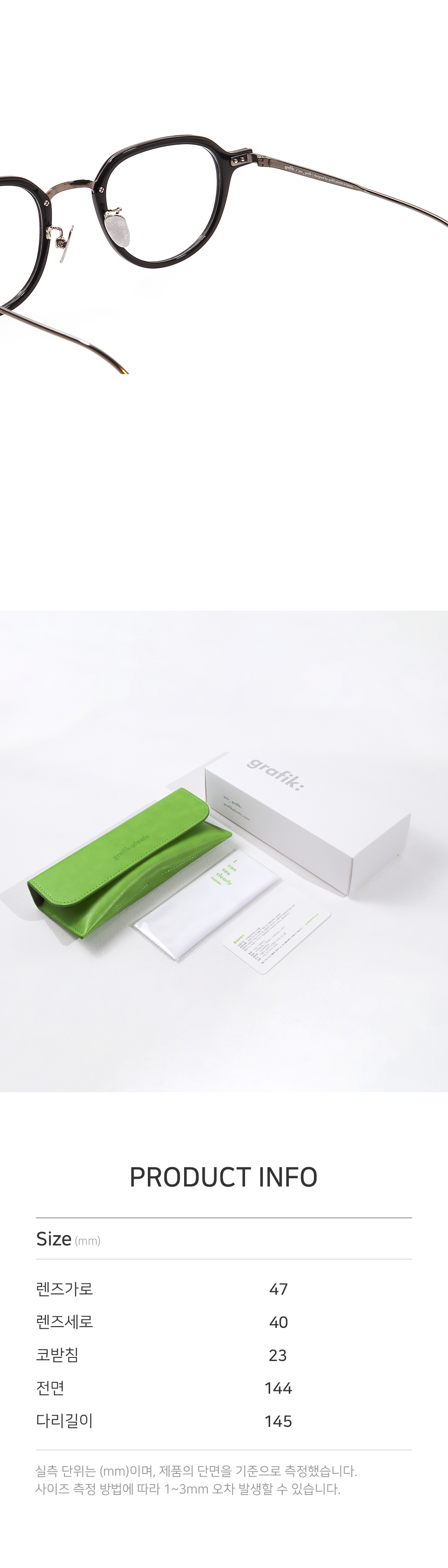 *안경테에 장착되어있는 렌즈는 프레임의 형태의 변형을 막기 위한 플라스틱 데모렌즈입니다.