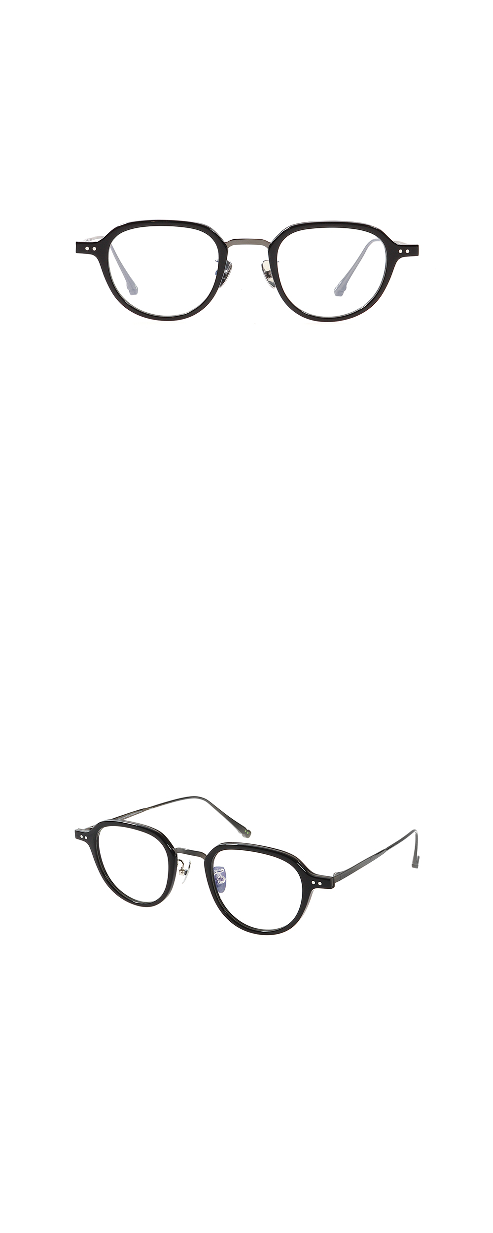 크라운 판토 스타일의 프레임과 아세테이트와 티타늄의 조합으로 가볍과 견고하게 착용할 수 있는 제품입니다.