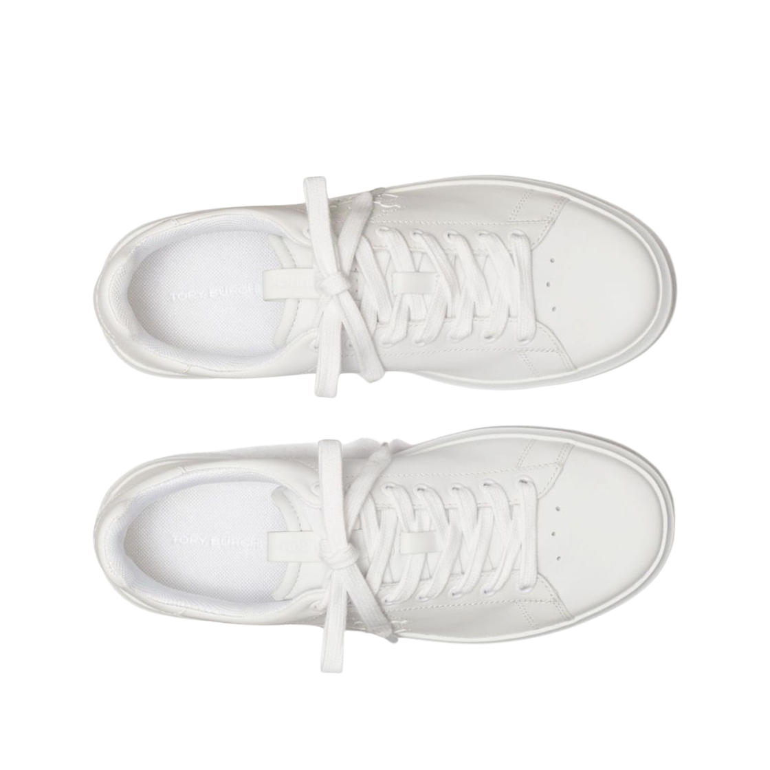 (W) Tory Burch Double T Howell Court Sneaker Titanium White