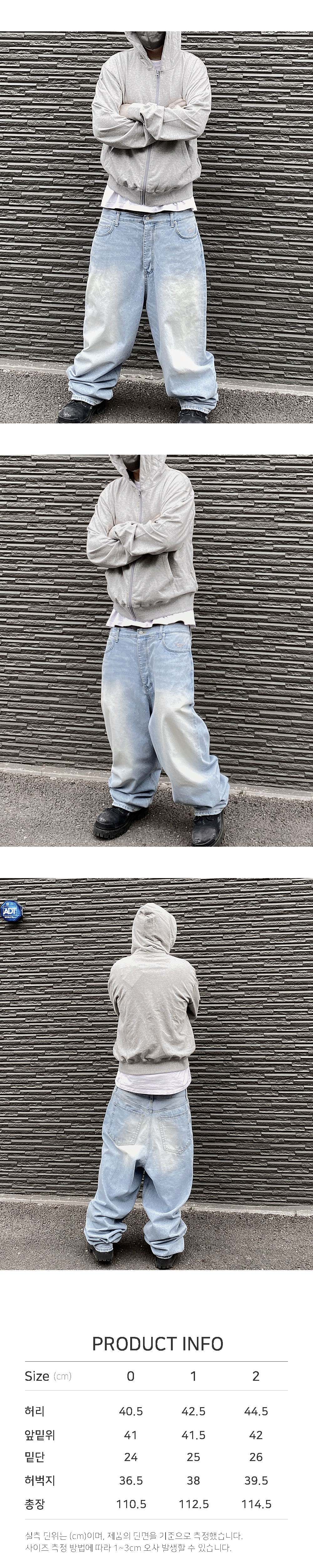 언더마이카 무.31 안티 Fxxking 로고 플레이 브러쉬 워시드 와이드 진 스카이블루