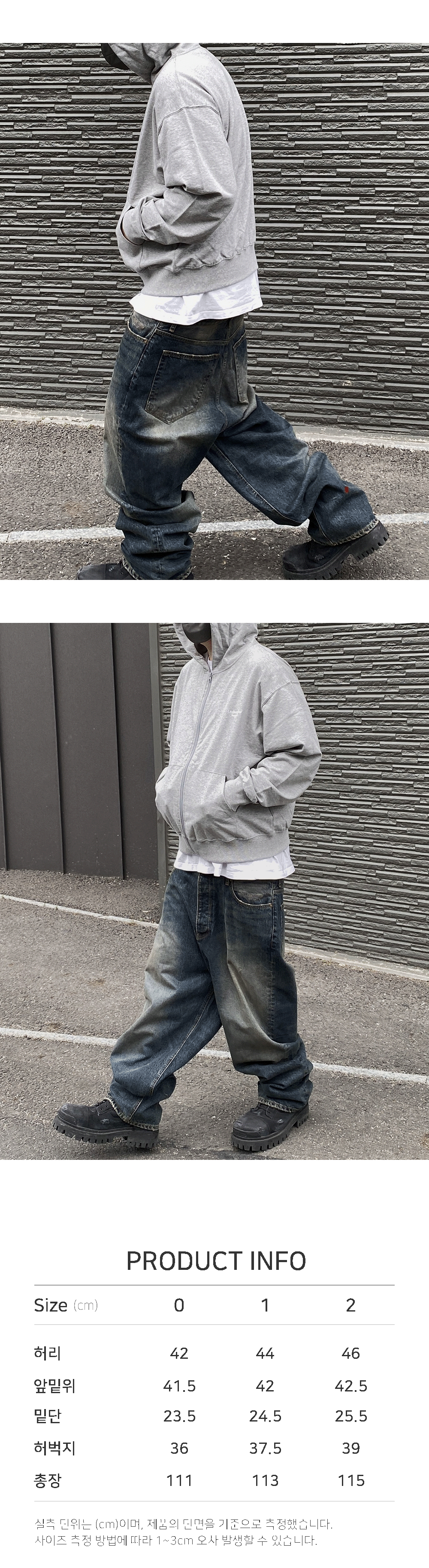 언더마이카 무.26 안티 Fxxking 로고 플레이 브러쉬 워시드 와이드 진 오일블루