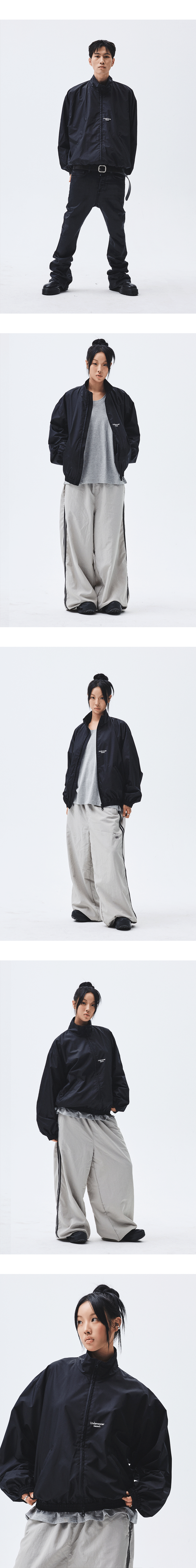 언더마이카 무.24 안티 Fxxking 로고 플레이 크롭 집업 자켓 블랙