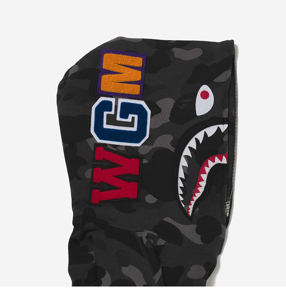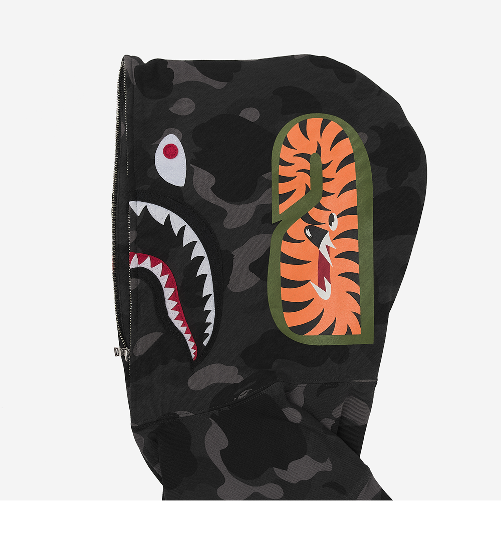 베이프 컬러 카모 샤크 풀 집업 후드 블랙