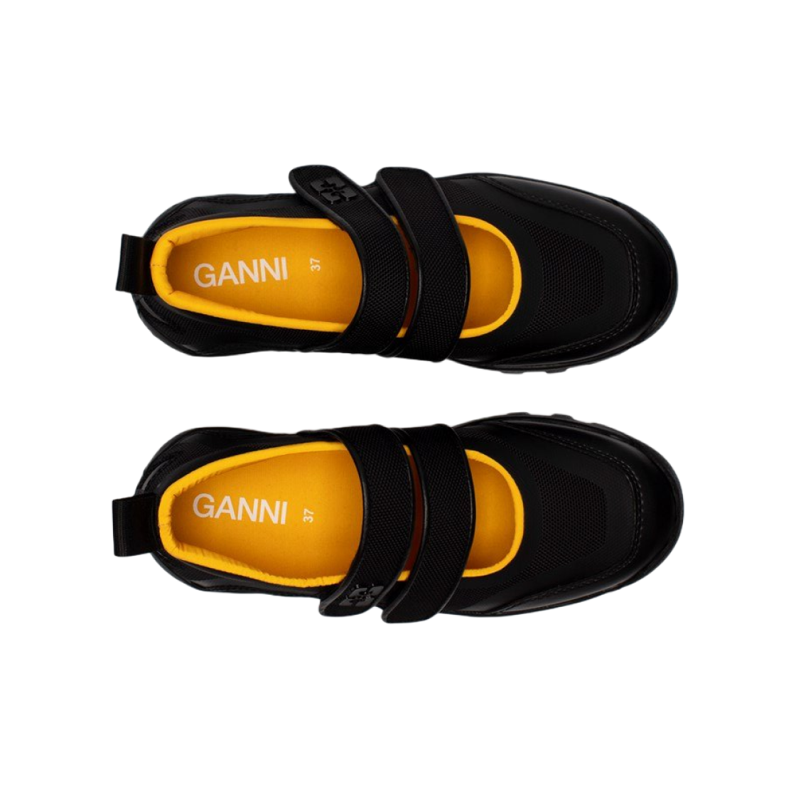 (W) Ganni Performance Velcro Mary Jane Ballerinas Black