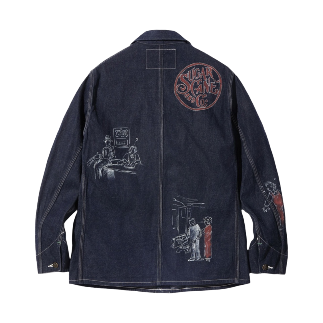 Sugar Cane Fiction Romance 11 oz. Blue Denim 1920's Cartoon Work Coat One Wash