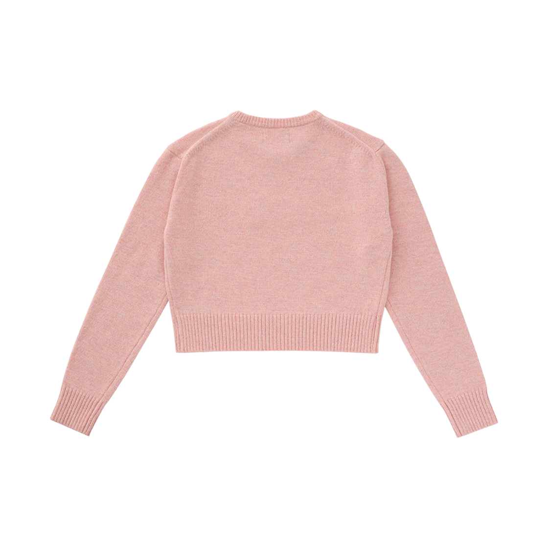 (W) Emis Cropped Logo Jacquard Wool Sweater Pink