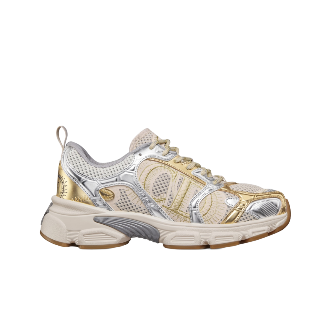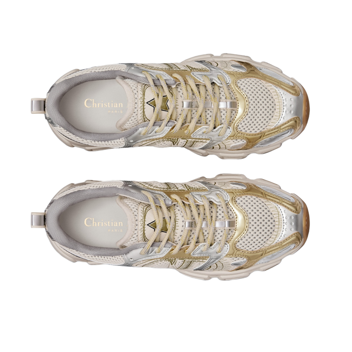 (W) Dior Chrono Sneakers Mesh Laminated Leather Beige Gold
