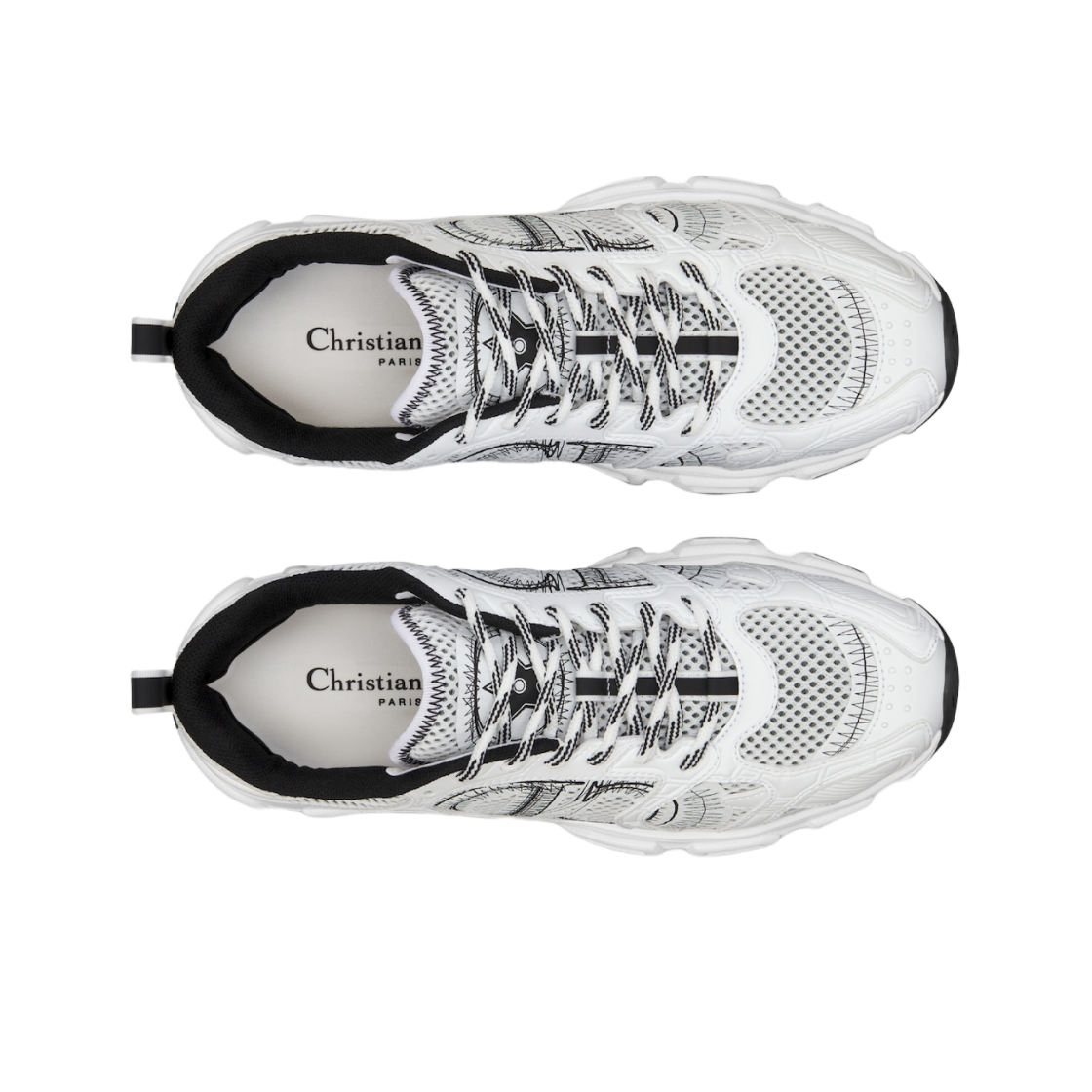 (W) Dior Chrono Sneakers Mesh Laminated Leather White Black