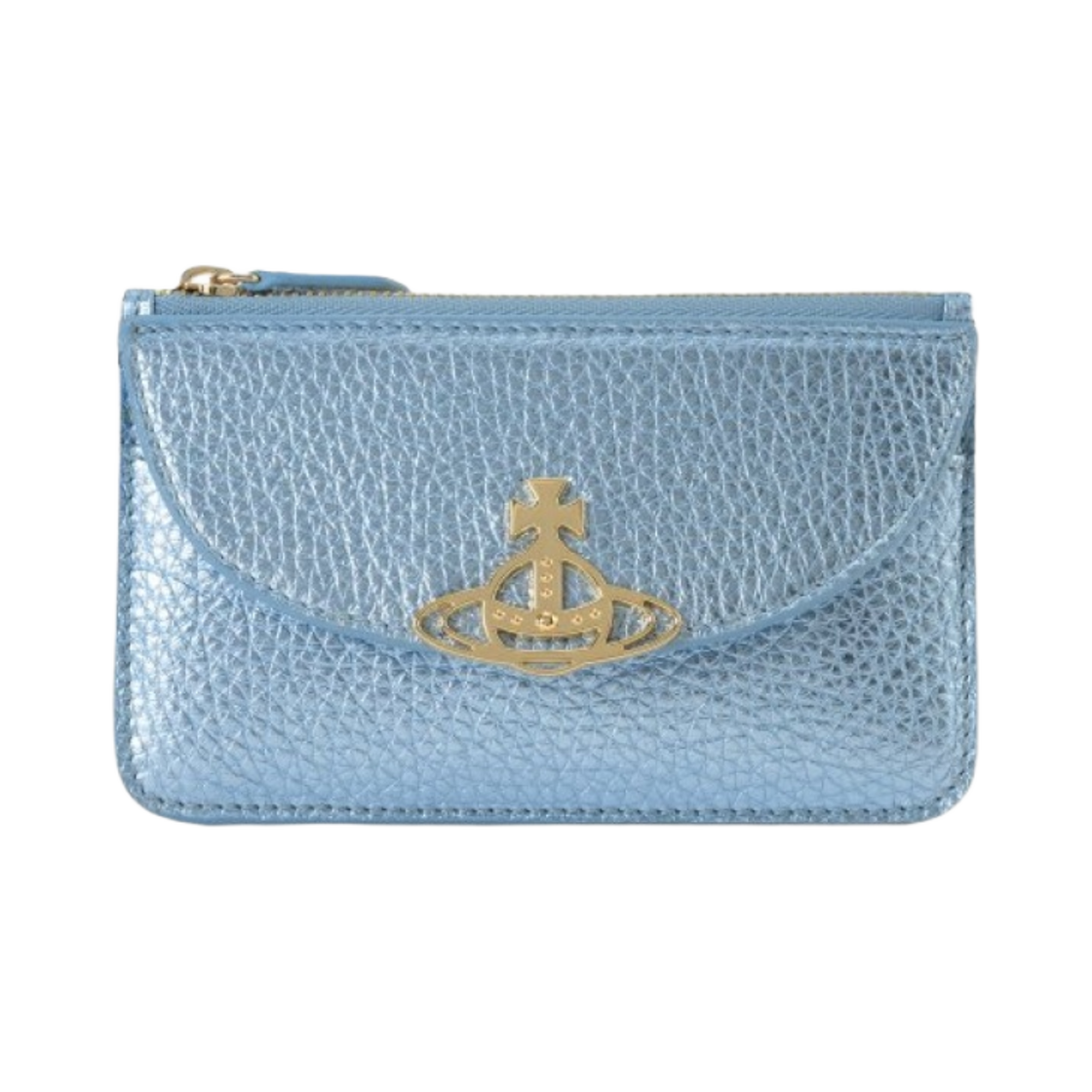 Vivienne Westwood Grain Leather Half Moon Card Holder Light Blue