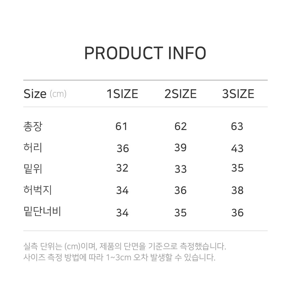 | 허리 | 허벅지 | 밑단 | 밑위 | 총장 |