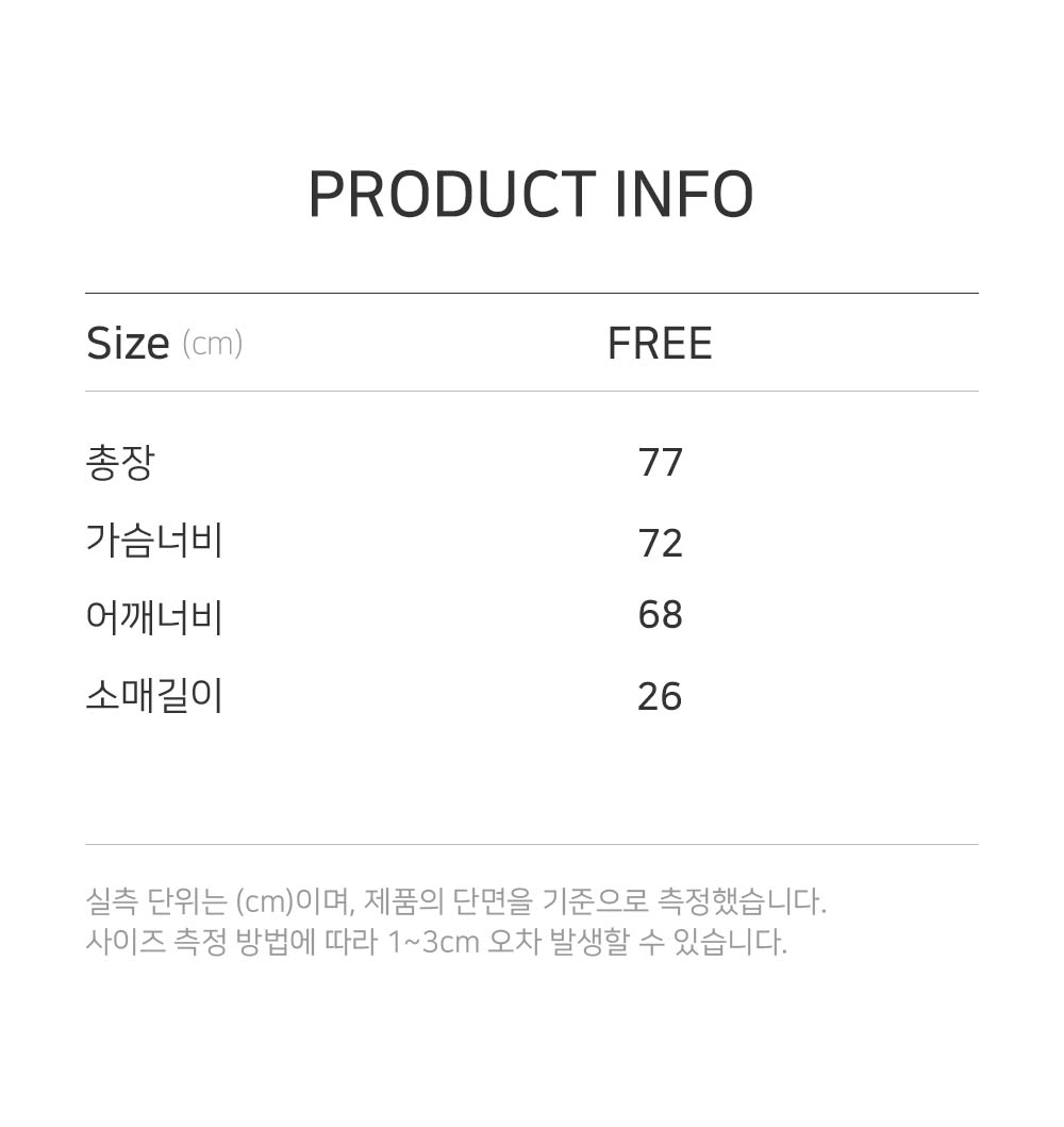 측정 방법에 따라 사이즈에 일부 오차가 있을 수 있습니다.